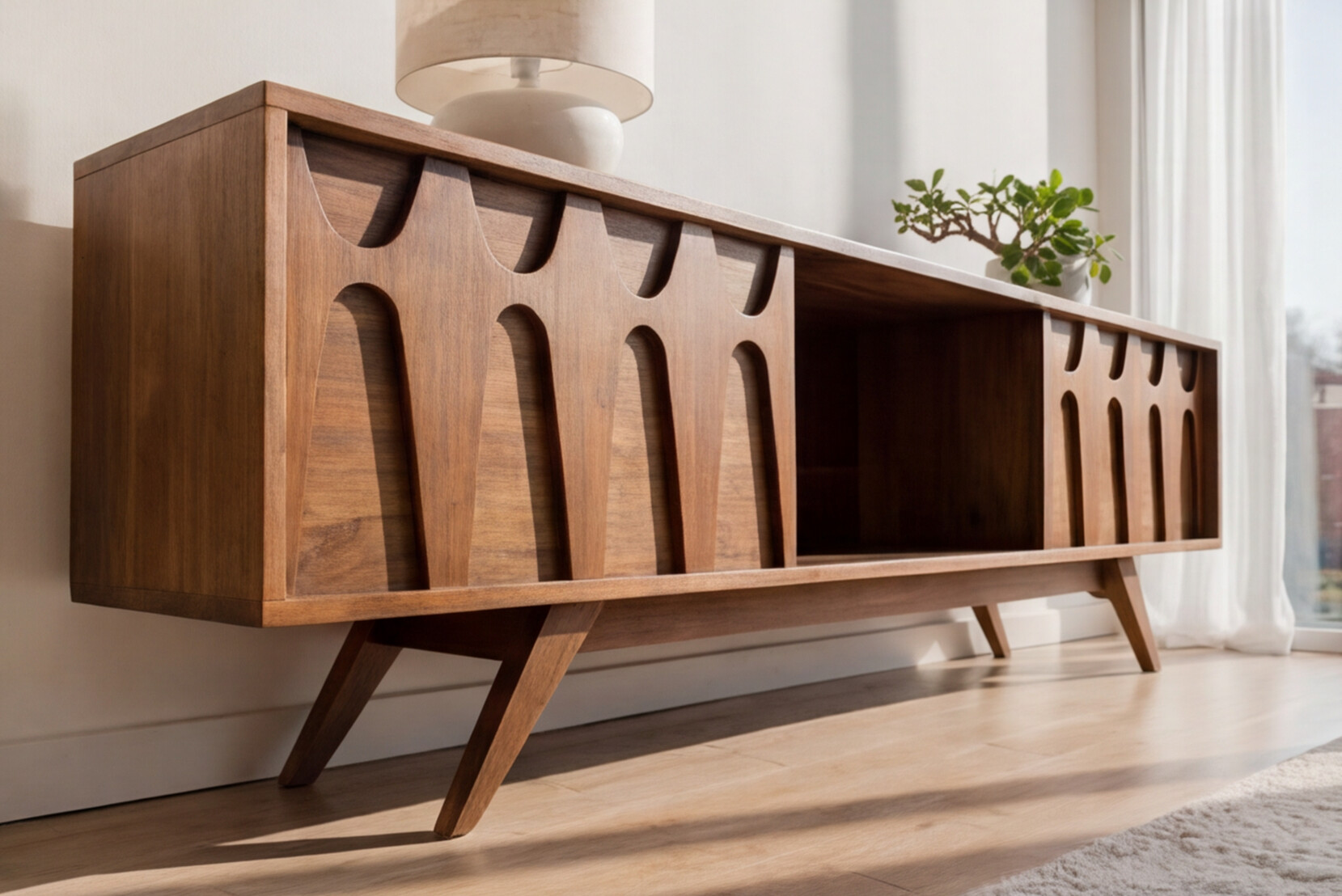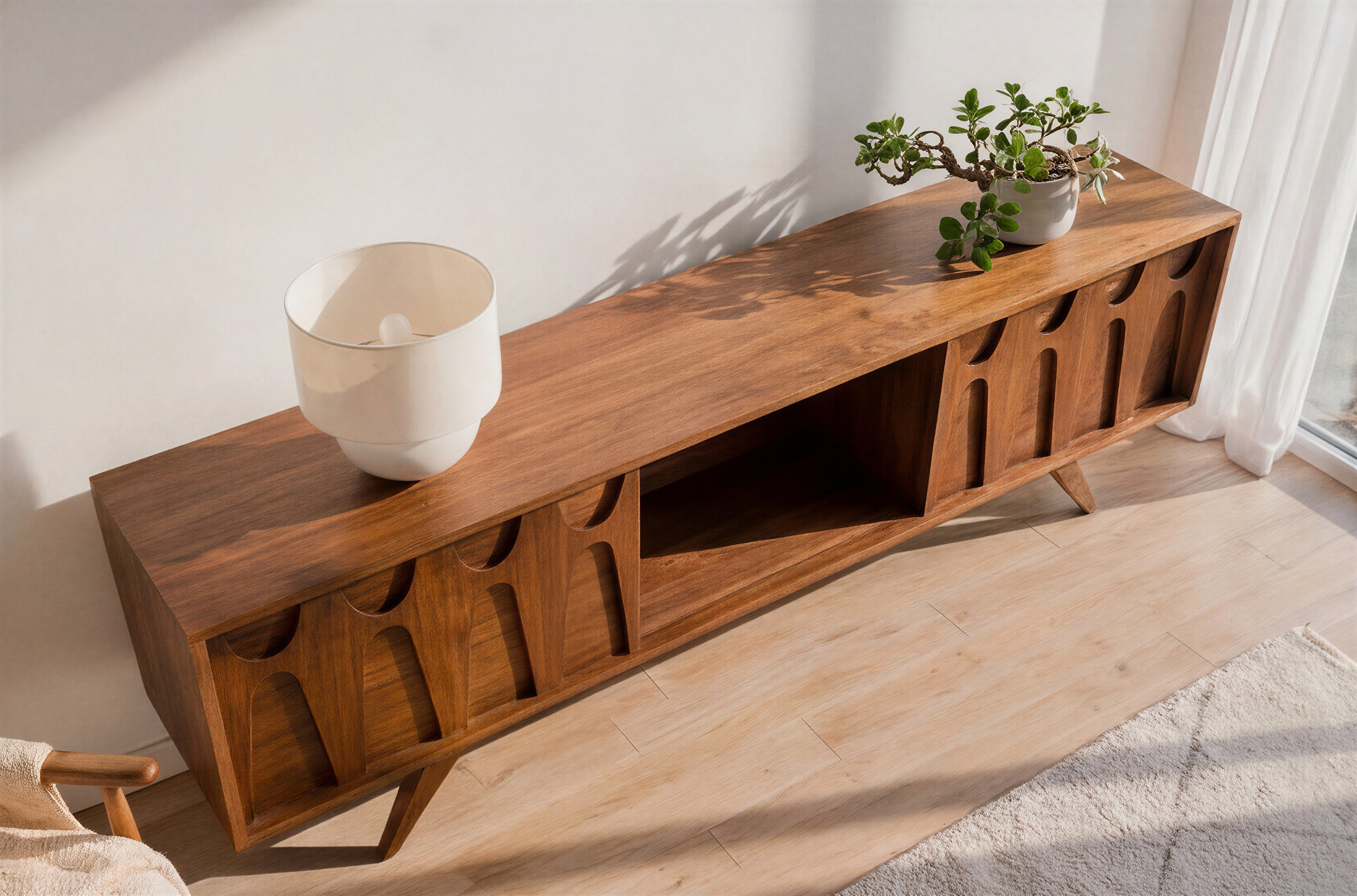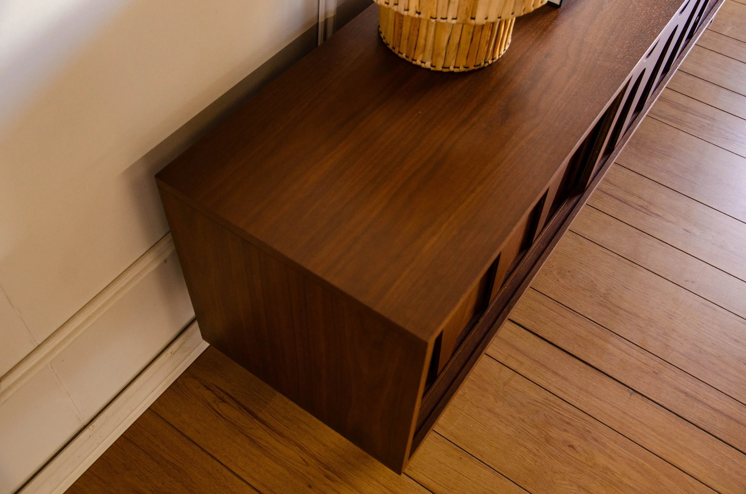 If you choose the TV Console option, cable holes will be automatically made in the middle, top and bottom shelves. Please contact us if you would like to have them elsewhere or none at all.
